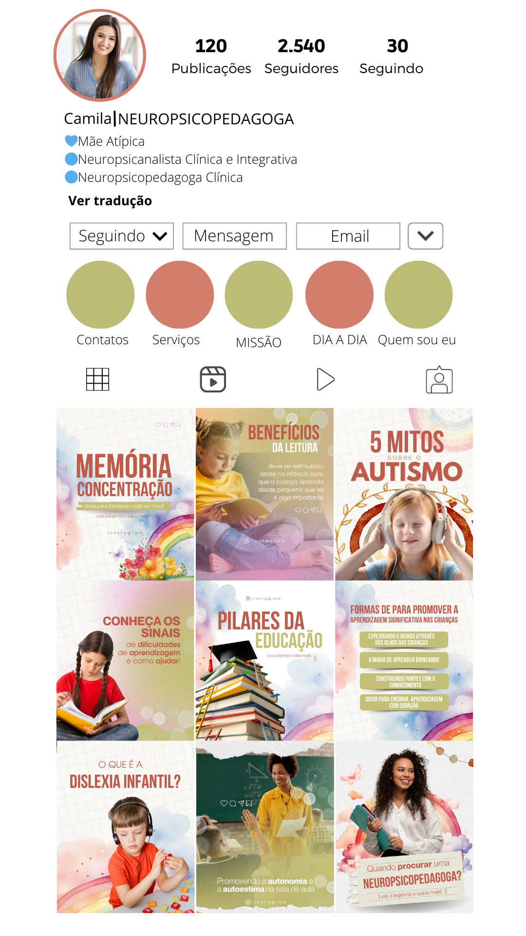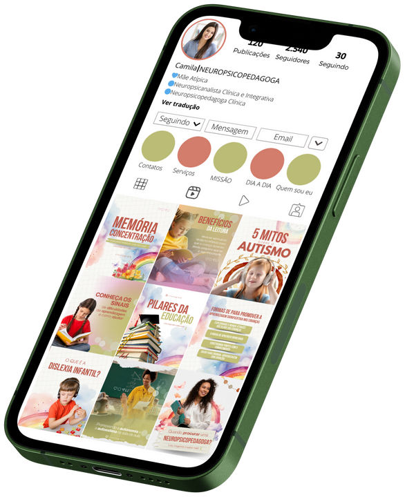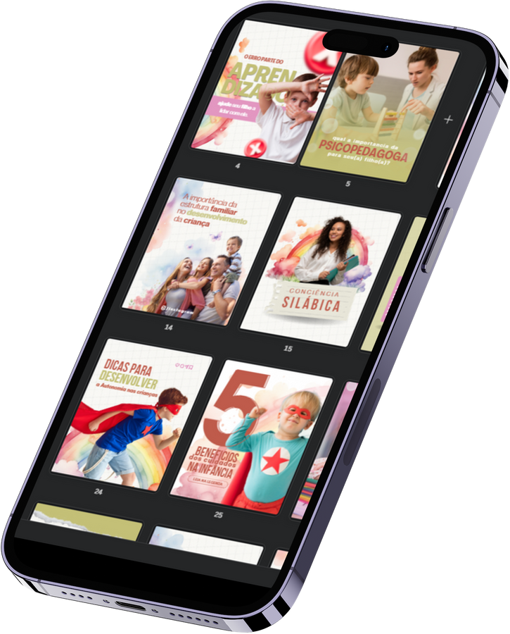 Com o pacote Canva para Neuropsicopedagogas, é possível criar conteúdo profissional de forma rápida e eficiente para manter o seu perfil atualizado e atrativo.